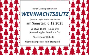 Am 6.12. laden wir ganz herzlich zum Weihnachtsblitzturnier ein.