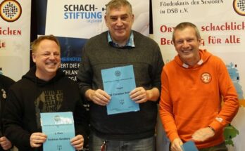 Beim Schachopen des Senioren-Förderkreises in Bad Soden-Salmünster belegten Andreas und Stefan den 2. und 3. Platz Ü50, Udo mit ordentlichem Ergebnis Ü65.