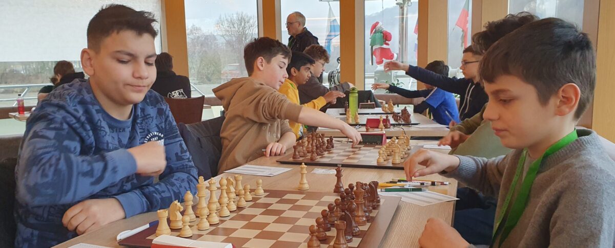 Also musste nachmittags die Wende her, gegen die Gastgeber aus Kelheim. Es wurde ein wüster Kampf. Philipp und Fabian, beide zum dritten Mal mit Schwarz beglückt, liefen in ähnliche Eröffnungsfallen der Wiener Partie und standen heillos auf Verlust. Beide erwiesen sich jedoch als Überlebenskünstler und holten 1,5 Punkte aus diesen beiden eigentlich hoffnungslosen Stellungen. Um es mit Ralf zu sagen, der aus der Ferne kommentierte: Fabian verunglimpfte die Eröffnung so dramatisch, dass es eines Wunders bedurfte sich zu retten. Doch das Brett leuchtete hell und das Weihnachtswunder geschah. Der Gegner fand statt dem KO Schlag den Weg ins eigene Aus.
