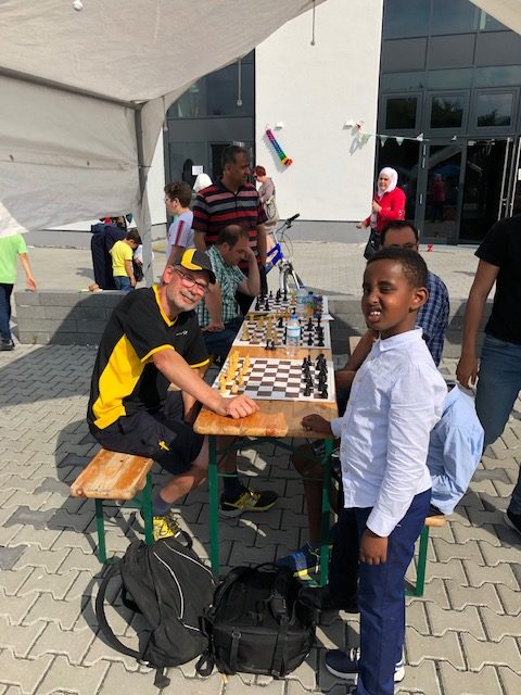 Der Schachklub war durch einen Stand vertreten, Karim, Mohammad und Shady Alkayas sowie Thomas Thimm waren für den SKM vor Ort.